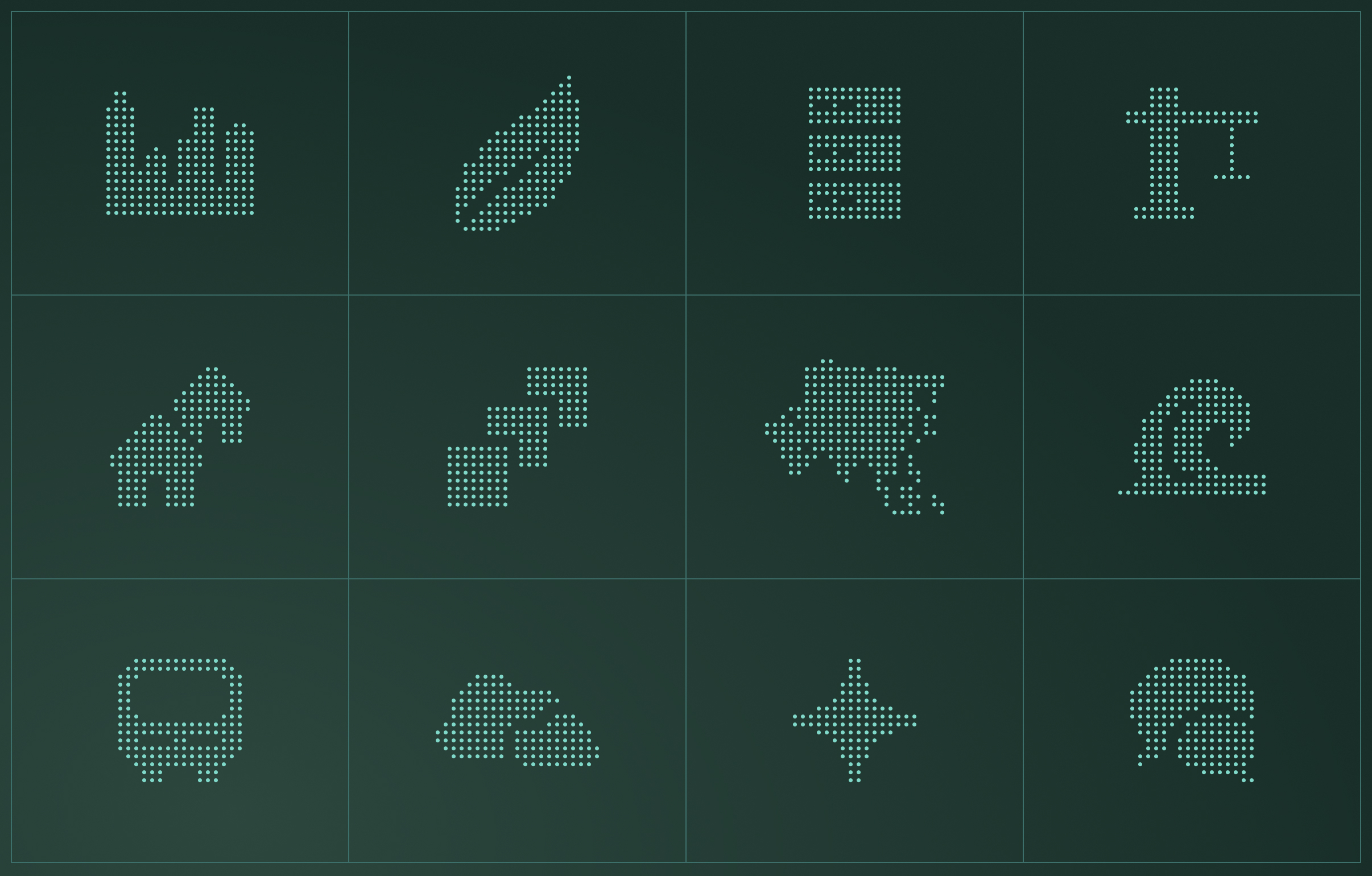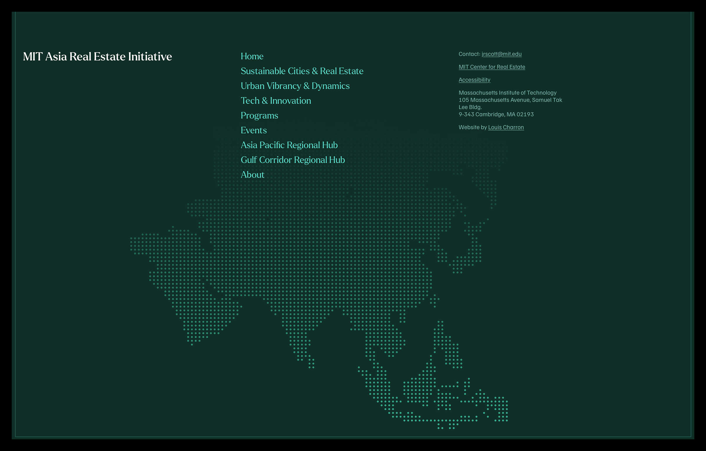 MIT Asia Real Estate Initiative is a new research platform connecting MIT Center for Real Estate with sustainable development, urban dynamics, and tech innovation across Asian cities. Two worlds in one identity: the trustworthy feel of an academic research initiative and the polish of high-end real estate. Dark green tones, flared typography, and dot-matrix maps & icons: elegant and lo-fi at the same time, somewhere between data visualization and decorative art.